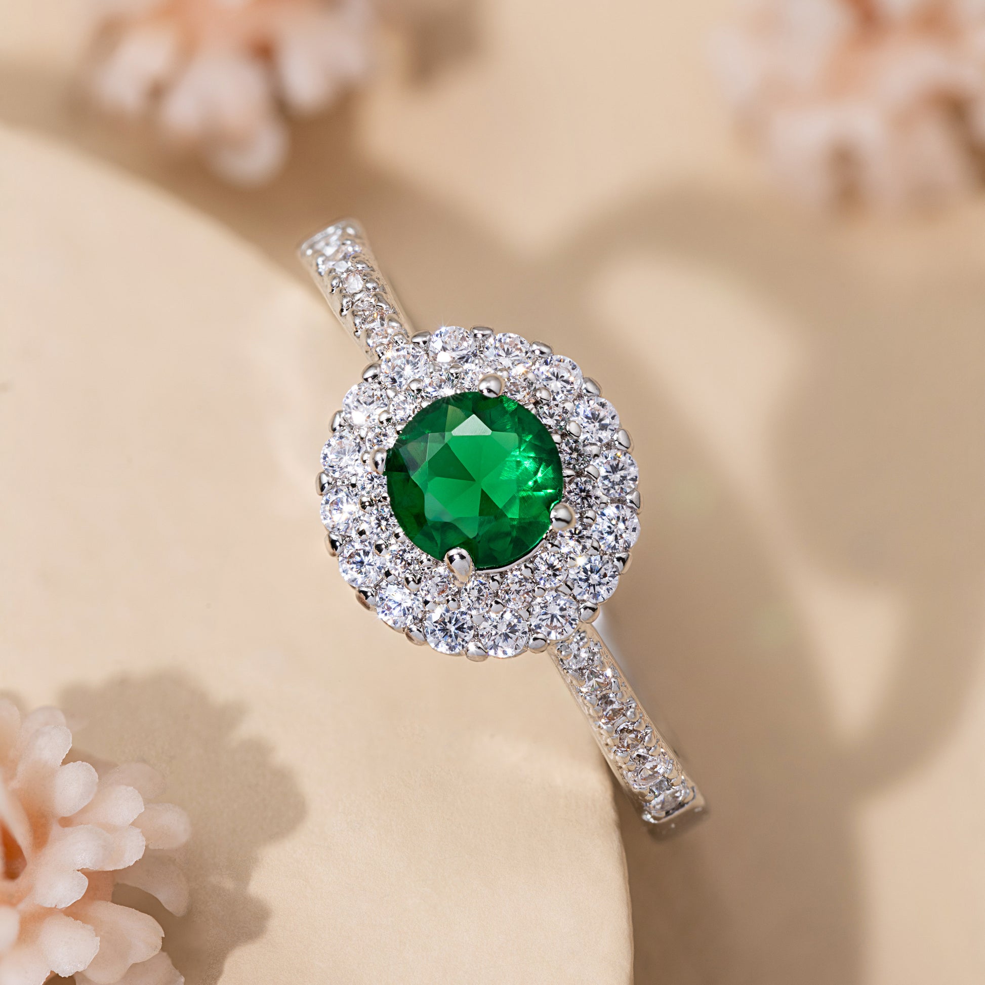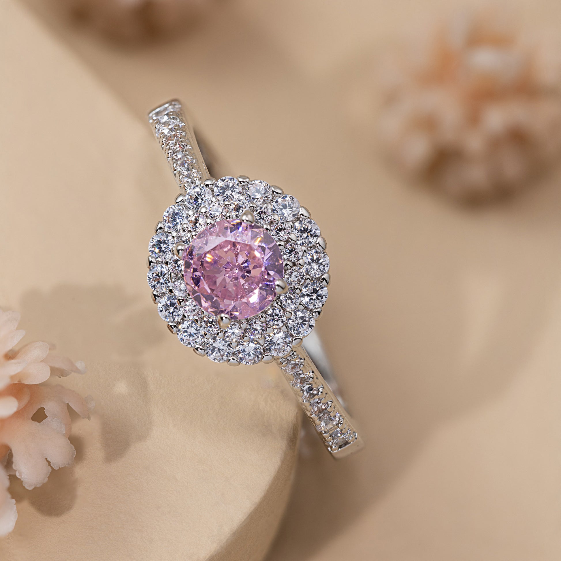 Add timeless sparkle to your style with the Radiant Halo Round Ring, available in both pink and green. This elegant ring features a brilliant round-cut center stone—choose soft pink for a romantic touch or vivid green for a bold statement—each surrounded by a double halo of shimmering crystals. Crafted in premium stainless steel silver, it offers lasting shine and hypoallergenic comfort.